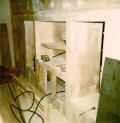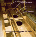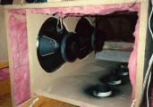 This is the ceiling subwoofer under construction in the attic. It has two Petras